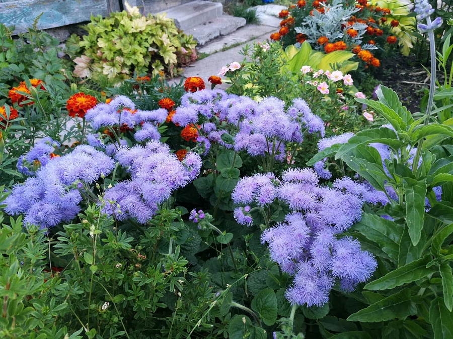Семена Агератума Голубая норка (golubaya norka) понравятся любителям необычных насыщенных окрасок. Однолетник полностью оправдывает свое название в период цветения. К середине лета невысокие кустики (около 35 сантиметров) покрываются ковром мелких цветков с трубчатыми тонкими лепестками, свободно шевелящимися на ветру. Обилие собранных в плотные мохнатые соцветия шариков около 2 сантиметров в диаметре действительно напоминает мех и вызывает желание прикоснуться. Растение предпочитает обогащенные плодородные почвы, солнечные участки, не выносит застоя воды в корнях.