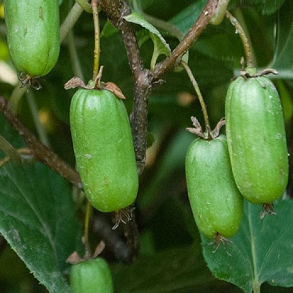 Саженцы Актинидии Коломикты Находка используются садоводами для вертикального озеленения и получения вкусных и полезных плодов зеленого цвета в начале осени. Овальные слаборебристые плоды любимы владельцами за кисло-сладкий вкус с яблочно-земляничным ароматом. При высадке крупномеров и саженцев подбирайте: