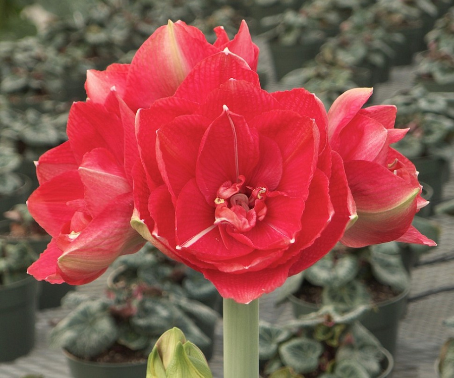 Амариллис махровый Double Dream - это волшебное растение, способное принести в ваш сад яркие краски и неповторимую красоту. Его ствол устойчивый и прочный, достигает высоты до 70 см, а цветки радуют глаз крупными размерами от 18 до 20 см. Листья амариллиса имеют изящную форму, что придает растению особый шарм и элегантность.
