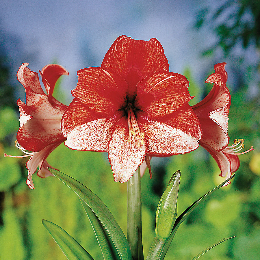 Амариллис Простой Харизма - это великолепное растение, которое поражает своей красотой и изяществом. Его стебель достигает высоты до 70 см, а цветок имеет диаметр до 12 см, что делает его по-настоящему величественным. Листья амариллиса имеют уникальную форму, а цветки окрашены в жемчужно-белый цвет с коралловым крапом, создавая неповторимый вид.