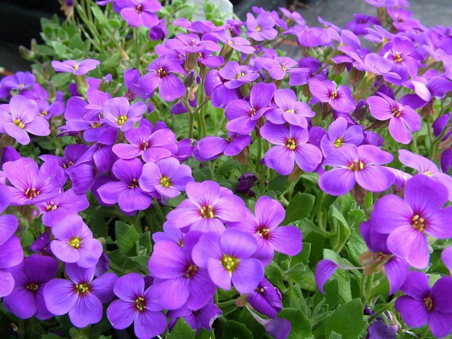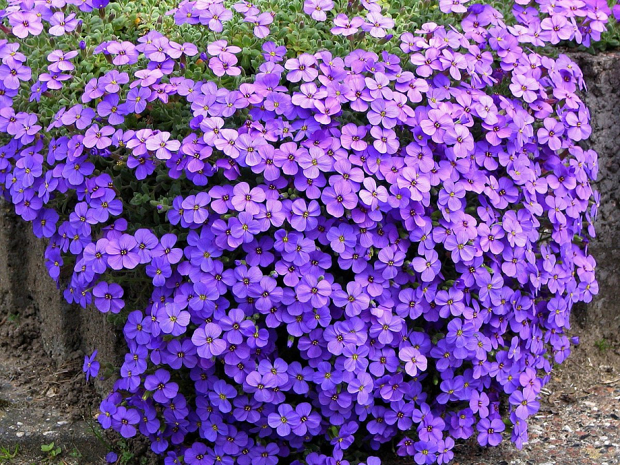 Семена аубреции смесь высевают в апреле — мае под стекло или пленку. В июне рассаду пересаживают на постоянное место. Участок выбирают хорошо освещенный или частично затененный с хорошо дренируемой, некислой почвой. Цветет культура на второй год после посадки в мае — июне. Кустик высотой всего до 10 см обильно покрывается мелкими цветочками сиреневого и фиолетового оттенков. Такое растение хорошо разрастается и прекрасно смотрится в альпийских горках, при оформлении склонов. При выращивании в горшках культуру можно использовать в вертикальном озеленении стен.