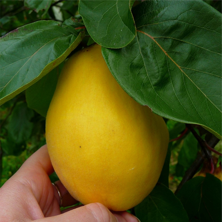 Саженцы айвы продолговатой грушевидной (Gruszkowata) своё название получили за яркие жёлтые плоды, похожие на грушу. Они созревают осенью, очень крупные, с массой до 800 г. Мякоть сладкая, но жёсткая и терпкая, поэтому чаще употребляют в переработанном виде. Самое популярное блюдо – мармелад, желе и варенье. Дерево вырастает до 3 м в высоту и представляет собой также декоративную ценность. Особенно красиво смотрится весной во время цветения крупными бело-розовыми цветами. Растение теплолюбиво, поэтому при посадке крупномеров надо выбирать наиболее солнечные участки.