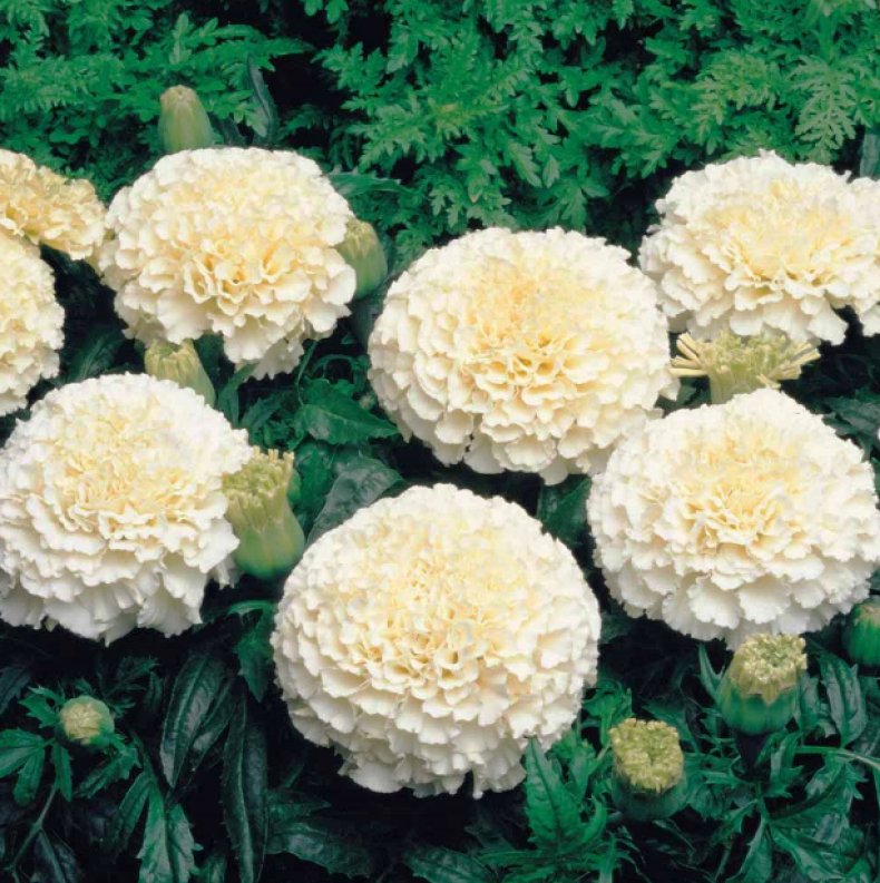 Бархатцы прямостоячие килиманджаро - это удивительное растение с кремово-белыми цветками, которое поразит вас своей изящностью и неповторимым шармом. Стебель этого растения прямой, достигает высоты до 45 см, что делает его идеальным для групповых посадок в вашем саду или огороде. Листья бархатцев имеют интересную форму и придают растению особый вид.