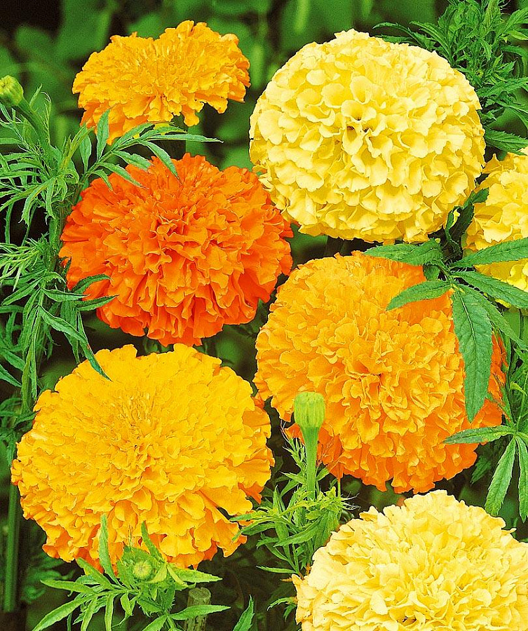 Бархатцы прямостоячие максимикс - это удивительное растение с разнообразной окраской цветков, которое порадует вас своей красотой на протяжении нескольких месяцев в году. Сорт maksimiks отличается высотой до 35 см и предпочитает солнечные места для посадки. Эти растения идеально подходят для групповых посадок, создавая яркие и красочные композиции в вашем саду или на клумбе.