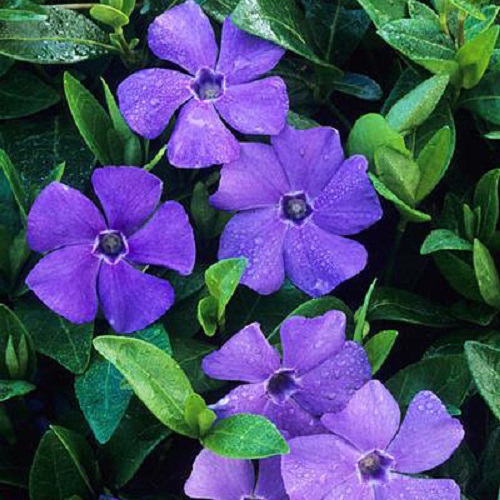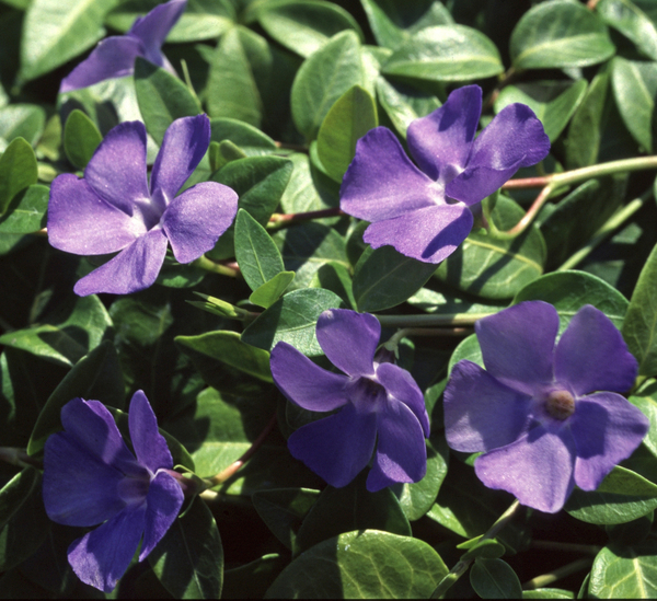 Саженцы барвинка малого Ла Грэйв подойдут для оформления отдельных участков сада яркими ковриками. Активно растет, ежегодный прирост составляет до 80 сантиметров, побеги стелются по земле и отлично укореняются, создавая плотное покрытие. Цветет крупными голубыми цветками с белой серединкой. Эффектно смотрится и после цветения, так как густая темно-зеленая вариегатная листва не теряет своей привлекательности на протяжении всего года и остается декоративной даже зимой. Ла Грэйв используется для закрытия грунта между высокорослыми растениями, хорошо барвинок будет смотреться в смешанных композициях.