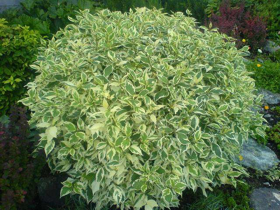 Саженцы дерна белого Элегантиссима (Elegantissima) великолепный вариант для озеленения садового участка. Крупномер украшает сад круглый год – нежная серая крона с легким седым налетом, пышное цветение, необычные плоды. Побеги имеют удивительный апельсиновый или красный цвет, который крайне художественно смотрится на белоснежном снежном покрытии. Выбор места для высаживания дерена несложен: