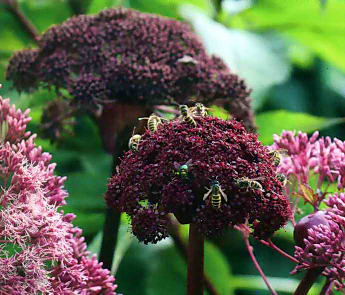 Рассада Дудника гигантского становится украшением любого сада во время цветения, то есть, начиная со второй половины июля. Это растение имеет эффектный внешний вид и никогда не остается незамеченным. У него плотный и короткий корень, одиночный стебель, на котором располагаются большие листья и соцветия темно-бордового цвета. При правильном уходе соцветия вырастают до 20 – 30 см в диаметре. Данный сорт рекомендуется высаживать во влажной почве на солнце или в тени. Дудник гигантский относится к типу монокарпических растений, которые зацветают и плодоносят всего 1 раз. Пересаживать можно только очень молодые побеги, так как после пересадки растение часто гибнет.