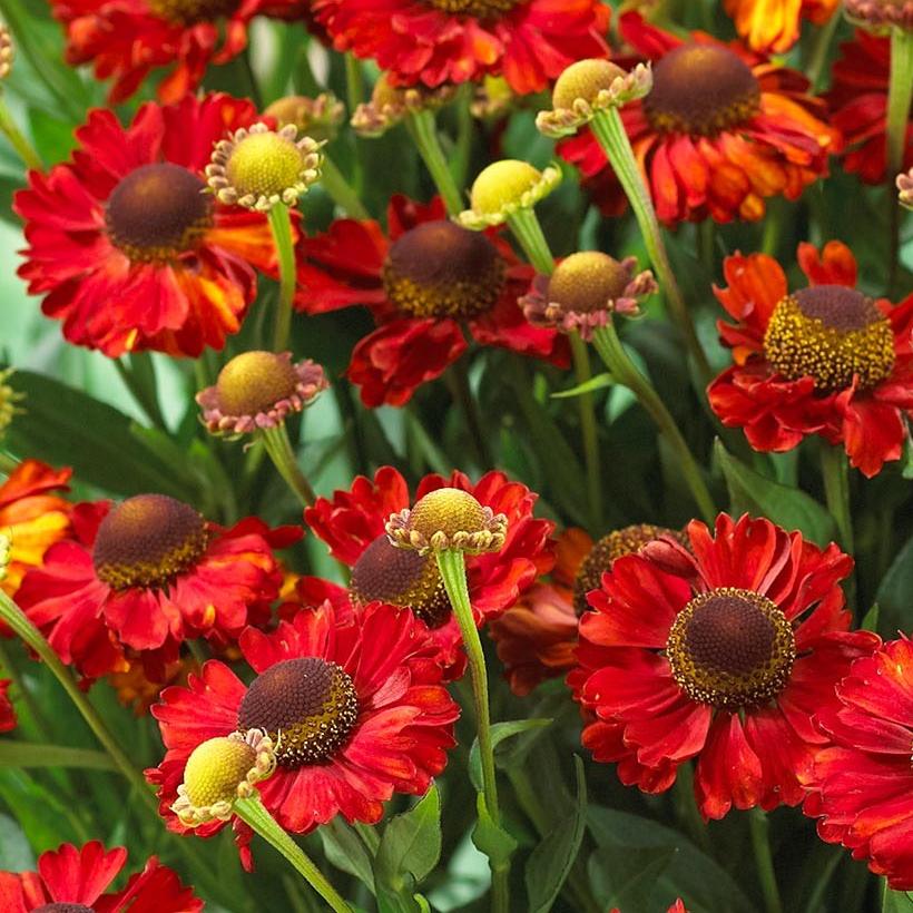 Рассада гелениума «Горячая лава» хорошо разрастается на солнечных участках. Грунт лучше заранее удобрить. Сорт семян гелениума «Горячая лава» относится к осенним. Хотя период цветения начинается в июле и заканчивается в августе. На длинных побегах, высота которых варьируется от одного до двух метров, сверху распускаются золотисто-оранжевые цветочки. Серединка представлена крупной полусферой коричневого цвета. Цветы средней величины - 6 см в диаметре. Листочки негусто расположены по стеблю. По своей форме они довольно простые и заостренные. Края листочков рассады гелениума «Горячая лава» украшены мелкими зубчиками.