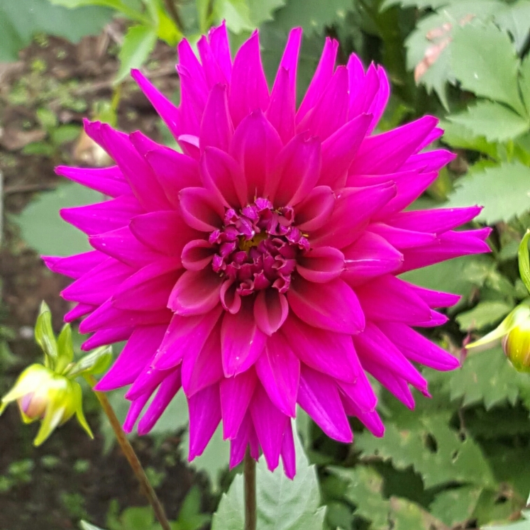 Саженцы и рассада георгины бахромчатой Амбишн (Dahlia cultorum) — настоящее тёмно-лиловое чудо высотой около одного метра. Разновидность голландской селекции, славящаяся густомахровыми цветами с длинными лепестками, рассеченными на кончиках.