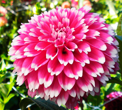 Окраска цветка : малиновые лепестки с зубчатыми белыми кончиками