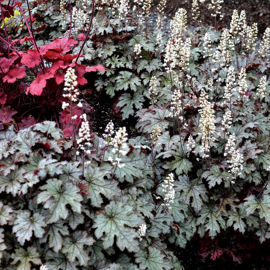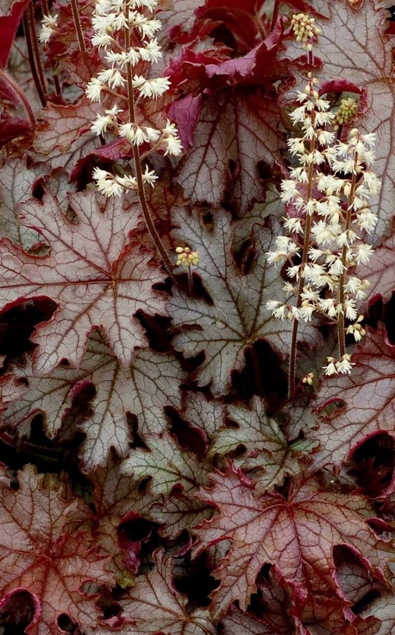 Рассада гейхереллы Кракед Айс (Chacked Ice) выглядит очень эффектно благодаря темным прожилкам, контрастно проступающим по синевато-зеленой поверхности листвы. Во второй половине лета и без того привлекательный вид дополняется цветоносами с мелкими розовыми цветочками. Этот сорт прекрасно сочетается с геранями, лилейниками и астибальдой. Кроме высокой декоративности, рассада гейхереллы Кракед Айс (Chacked Ice) привлекает садоводов неприхотливостью. Растение не боится вредителей и болезней. На зиму кусты не следует стричь, так как листва послужит естественным укрытием.