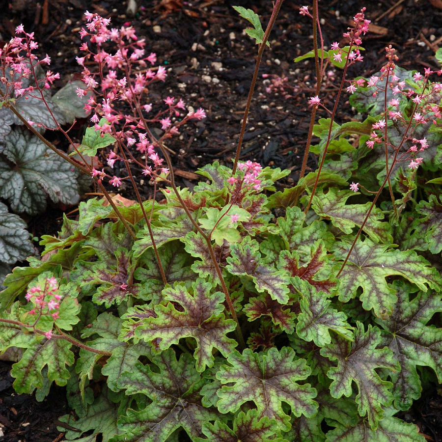 Рассада гейхереллы Тапестри (Tapestry) – декоративное многолетнее растение. В высоту достигает около 20 – 25 см. На русский язык переводится как «Гобелен», отличается своей таинственно-манящей красотой голубовато-зелёных листьев и яркими розовыми цветами. Быстро размножаются, несмотря на меняющиеся погодные условия. Семена следует проращивать в местах хорошо освещённых, с питательной почвой. Особенности сорта Tapestry: