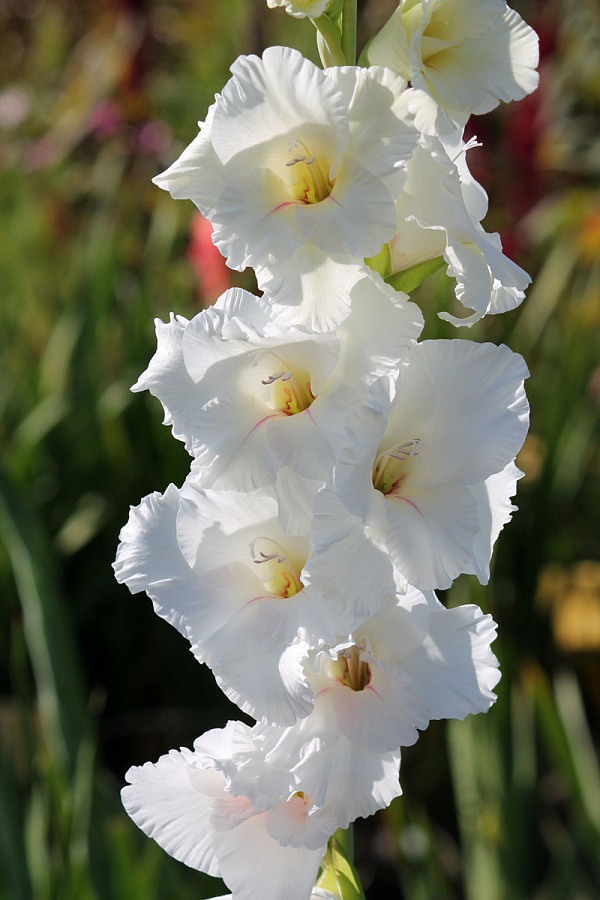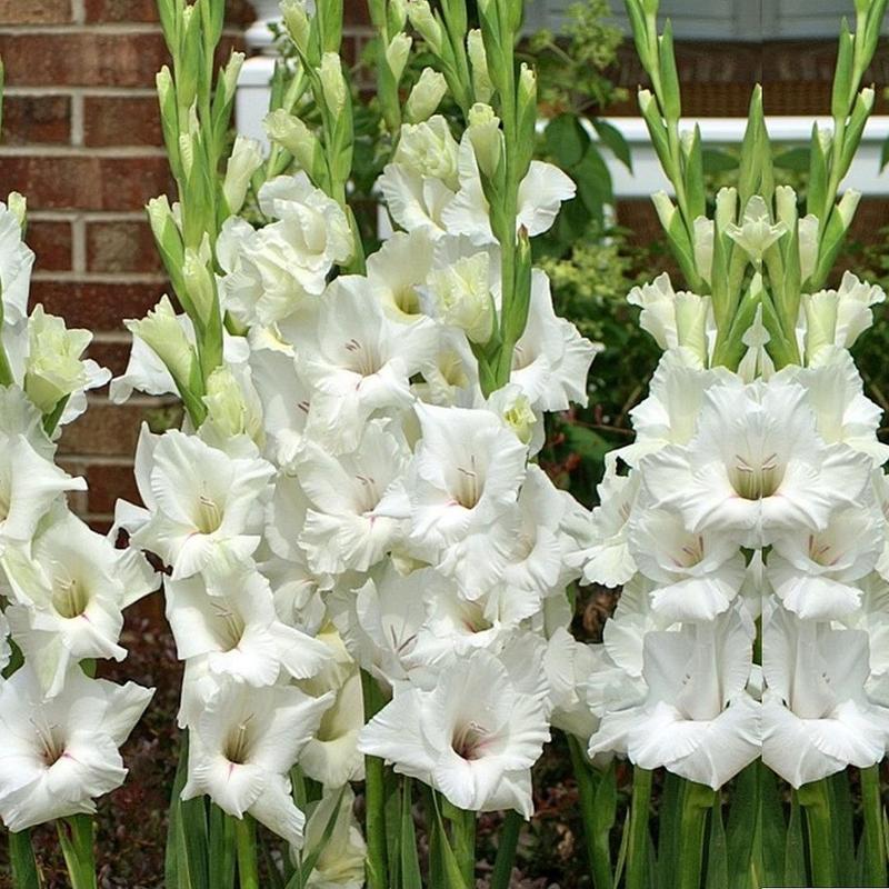 Луковицы гладиолуса гибридного White Prosperity порадуют любителей нежных декоративных растений – летом на длинных цветоносах распускаются белоснежные цветы, собранные в колосовидные соцветия. Этот сорт идеально подходит для составления роскошных букетов, а также оформления садовых объектов: скамеек, дорожек, ограждений, беседок. Луковицы гладиолуса гибридного White Prosperity нуждаются в регулярных поливах, но не переносят скопления застойной влаги. Для посадки рекомендовано выбирать участки с хорошим освещением и легкой полутенью. Высота взрослого растения достигает 110 сантиметров.