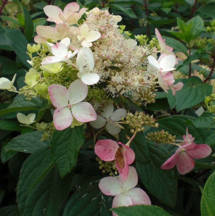 - одинаково хорошо приживается как в тени, так и на солнце. Почву для гортензии Ангел Блаш лучше выбрать дренированную, богатую гумусом. Уникальность крупномера – в необычной окраске соцветий – в начале цветения они белоснежные, расцветая, приобретают розовый оттенок. Осенью цветы растения окрашиваются в рубиновые тона.