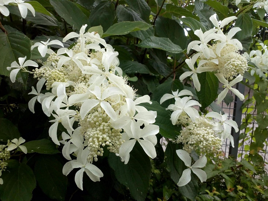 Само растение представляет собой кустарник, высота которого может достигать двух метров, побеги редкоразветвленные, листья темно-зеленого цвета, широкие. Соцветия состоят из цветов двух типов: крупные с длинными лепестками и белые плодоносящие маленькие цветки.