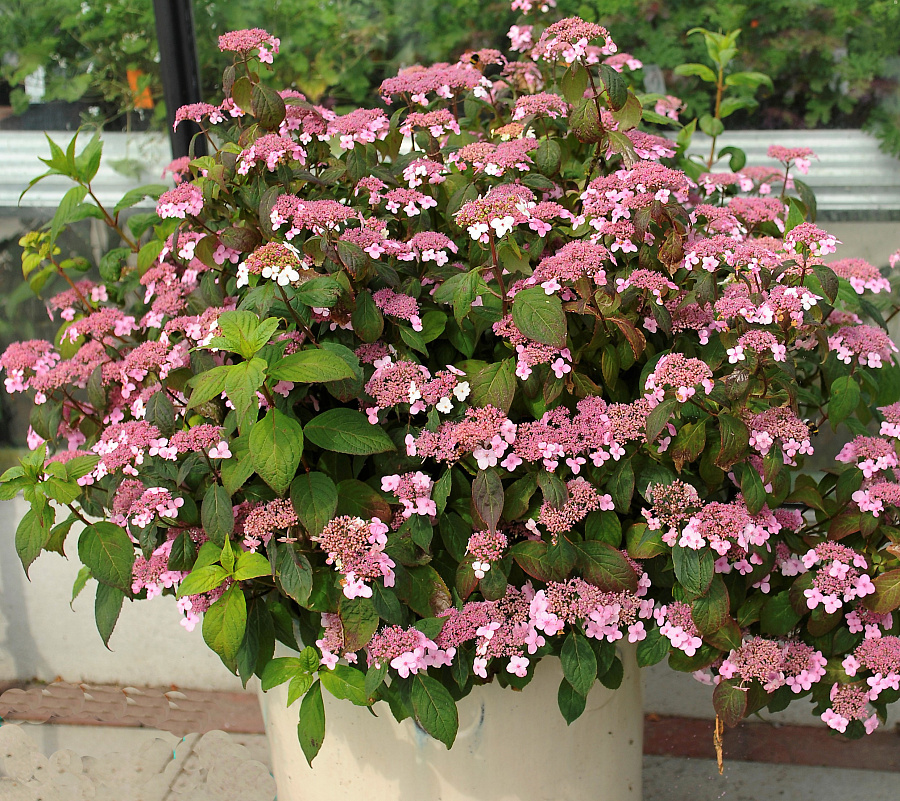 Саженцы Гортензии пильчатой Оамача (Oamacha, Hydrangea serrata) – привлекательный вид пильчатой гортензии. Растение вырастает до 100 сантиметров в длину и 80 сантиметров в ширину. Гортензия имеет бледно-розовые цветки, которые со временем темнеют и к концу цветения становятся малиновыми. На кислой почве его цветки обретают синюю окраску.