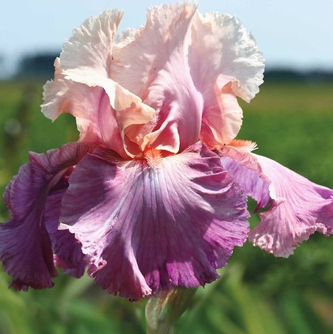 Ирис бородатый "Май Валентайн" - это великолепное растение с жемчужно-розовыми цветками, украшенными жёлтым оттенком на нижних лепестках. Высота этого ириса может достигать до 80 см, что делает его прекрасным элементом для создания ярких цветочных композиций в саду или на клумбе. Листья ириса имеют интересную форму, что добавляет изысканности его облику.