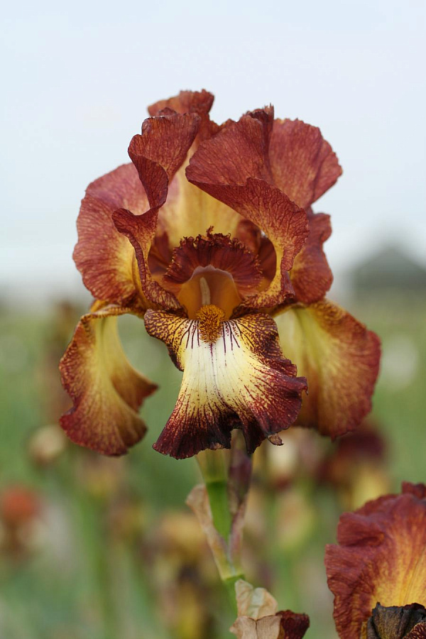 Ирис бородатый "Римфайр" - это великолепное растение с красно-оранжевыми цветками, которое поразит ваш воображение своей красотой и изяществом. Сорт iris germanica "Римфайр" отличается высотой до 120 см и диаметром цветка до 30 см, что делает его одним из самых великолепных представителей семейства ирисов. Листья зеленого цвета идеально дополняют яркие цветы, создавая неповторимый образ.