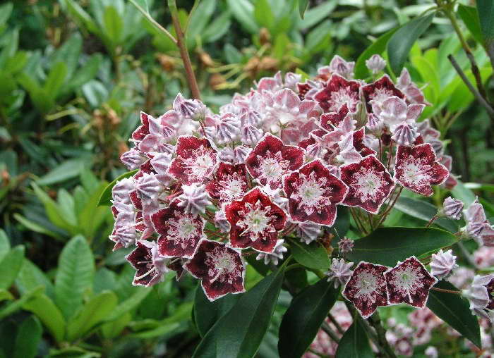 Саженцы кальмия Стернаталер (Sternataler) – медленнорастущее, но очень красивое растение. Кустарник с большими цветками шоколадного цвета внутри, розового снаружи, собранными в соцветия по 60 цветков превосходно смотрится в цветении.