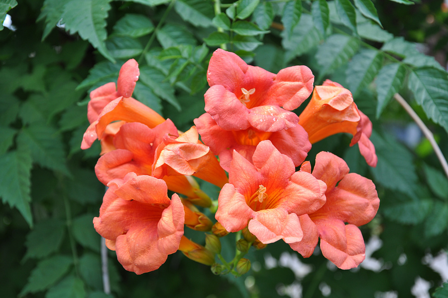 Кампсис укореняющийся урсинов - это великолепное растение с оранжевыми цветками, которое поразит вас своей красотой и изяществом. Его ствол прочный и устойчивый, а размеры растения позволяют ему стать настоящим украшением вашего сада или огорода. Листья кампсиса имеют необычную форму, что делает его еще более привлекательным.