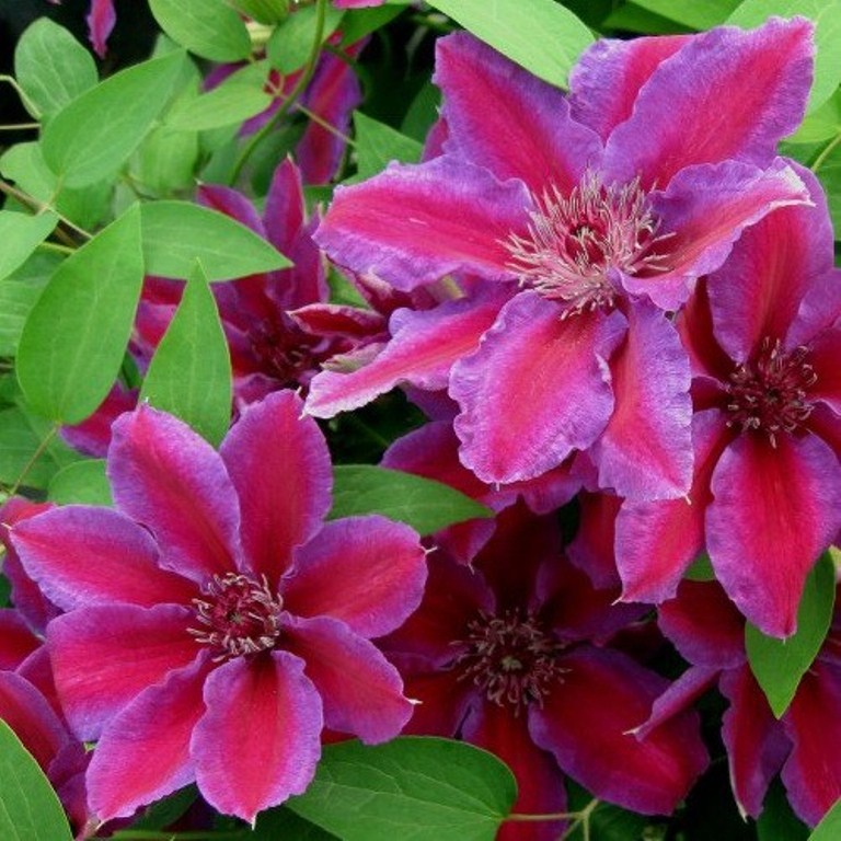 Клематис гибридный Акаиши (Akaishi) - японский высокорослый гибрид с крупными двуцветными цветками. Весной на побегах распускаются цветки диаметром 12-15 см. Лепестки светло-фиолетовой окраски, на которой ярко выделяется сиренево-пурпурная полоса. Для выращивания подходит хорошо освещенное место, которое большую часть дня находится в легком затенении. Предпочитает лёгкие богатую питательными веществами почву. Клематис гибридный Акаиши (Akaishi) следует высаживать вдоль ограждений, решеток, стен и других объектов, способных послужить опорой.