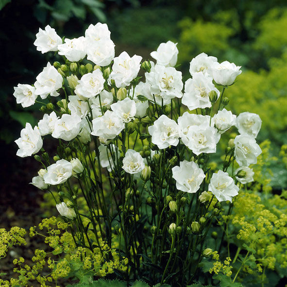 Колокольчик персиколистный ла бон ами - это изысканное растение с белыми колокольчиками, которые напоминают нежные персики. Его стебель прочный и прямой, достигает высоты до 60 см, что делает его идеальным для создания красивых цветочных композиций в саду или на клумбе. Листья данного растения имеют форму персика, что добавляет ему особый шарм и уникальность.