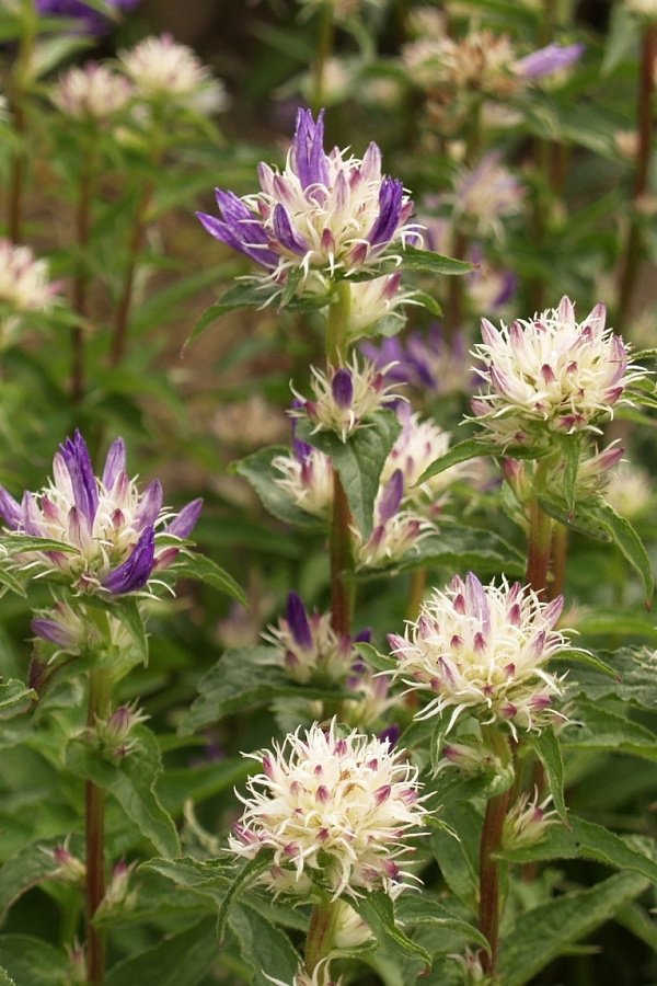Саженцы Колокольчика скученного Твистербелл (Campanula glomerata) станет необычным дополнением для любых цветников. Мощный куст с оригинальными цветами прекрасно будет смотреться и в альпинарии, и в одиночных посадках вдоль заборов, отлично подходит это растение для сложных ландшафтных композиций. Куст средней высоты, около 40 сантиметров, разрастается очень быстро, формирует около 20-25 мощных боковых побегов, на которых формируются необычные сиреневые цветы. Цветение продолжительное, в течение всего лета, при этом декоративность куста сохраняется до морозов. В теплую зиму на побегах сохраняются зеленые листья.