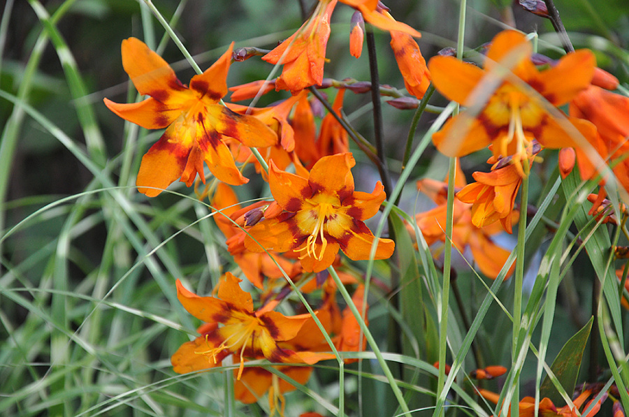 Рассада крокосмии обыкновенной MacKenzie быстро развивается, превращаясь в эффектный куст высотой до 40 сантиметров. В июле среди изумрудной листвы распускаются красивые цветы с ярко-оранжевыми лепестками. Цветение длится до сентября. Этот сорт используется для оформления миксбордеров, цветников, создания ярких групп и выращивается на срезку.