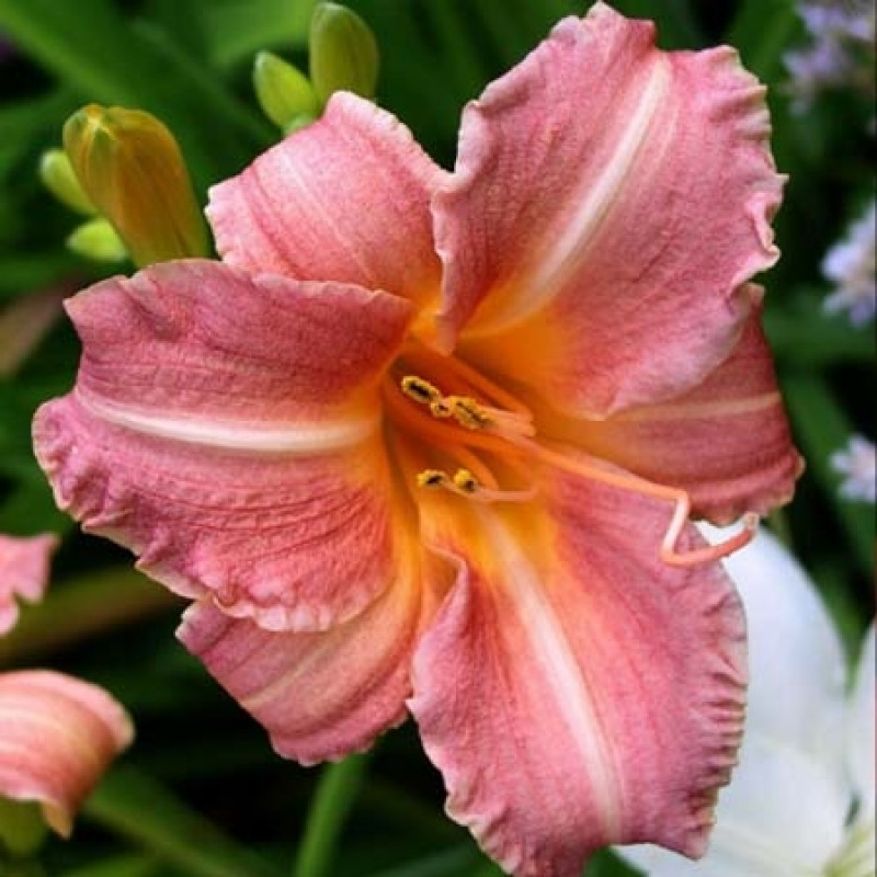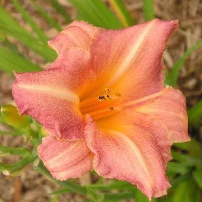 • Окраска цветка : Лососево-розовая с жёлтым горлом