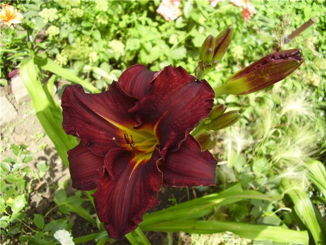 • Окраска цветка : темно-вишневый с желтым горлом