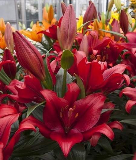 Луковицы лилии ЛА-гибрид Покерфейс были выведены путем скрещивания двух ярких гибридов азиатского типа и лонгифлорум гибрида. От первого в наследие им досталась отличная морозостойкость, а от второго ― невероятно крупные красивые цветки с восковидными лепестками. Покерфейс в период цветения не останется незамеченной даже в большом саду. На цветоносе высотой около 125 сантиметров распускаются огромные ярко-красные, практически алые цветки, на которых почти и не виден характерный крап из-за насыщенного цвета. Посадите эту красавицу в любом месте, она гарантированно привлечет внимание, украсив цветник.