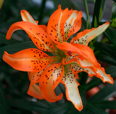 • Окраска цветка : цветы ярко-оранжевые с темными вкраплениями, со временем меняются на белые с салатовым центром, крап остается, цветение длительное