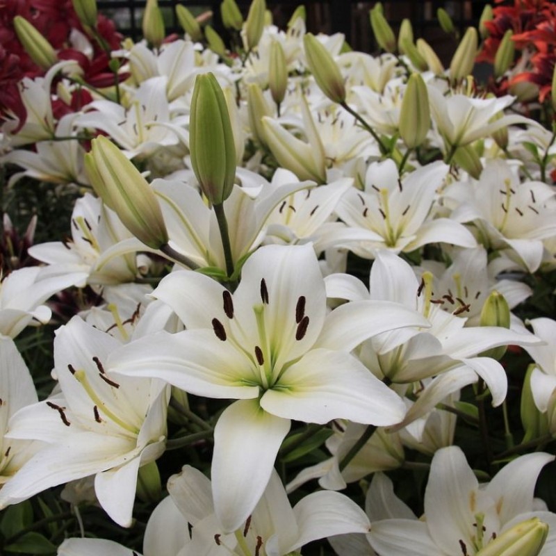 Луковицы лилии Navona можно высаживать на открытые клумбы или в контейнеры. Лучше всего культура себя чувствует в солнечных лучах или легкой тени, в хорошо дренированных почвах. Вырастает растение до 90-120 см в высоту. Цветет многолетник с июня до августа. Бутоны собраны в рыхлые соцветия по три штуки. Широкий и зауженный в конце воронкообразный цветок среднего размера, состоит из шести лепестков, имеет звездообразную форму. Окраска лилии Navona белая, серединка светло-салатовая. Это очень выносливый сорт, который широко используется в озеленении и выращивании на срез.