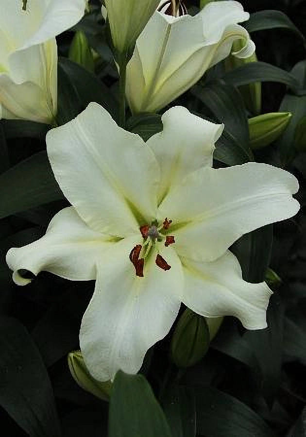 Луковицы Лилии ОТ-гибрид Мотаун (Lilium OT-hybrids Motown) для любого сада — это шик и блеск чистого королевского белого. Многолетнее растение с чисто белыми крупными цветами до 20 см в диаметре. Лепестки широкие с волнистыми краями, загнутые от сердцевины. У основания окрашены зеленым, по тыльной стороне лепестка проходит ярко выраженная зеленоватая полоса, которая на лицевой стороне выделяется только рельефом и окрашена в белый цвет. Пыльники крупные кирпично-оранжевые выделяющиеся на фоне белизны вощеных лепестков. Отличается неприхотливостью и любовью к кислым рыхлым почвам.