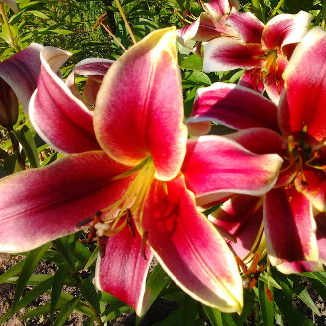 Луковицы Лилии ОТ-гибрид Софи (Lilium OT-hybrids Sophi) придадут клумбам яркость и сделают сад заметнее. Крупные цветки, расположенные попарно на высоких, до 150 см, стеблях, своим сильным ароматом привлекут насекомых на участок. Окраска лепестков ярко-рубиновая с широким ярко-желтым кантом. Фактура восковидная, глянцевая, жесткая. Многолетник предназначен для условного зонирования территории, групповых посадок. В срезке отличается очень долгим сроком сохранения декоративных свойств. В открытом грунте боится сильных ветров, предпочитает солнечные места и богатые почвы с хороши дренажем.