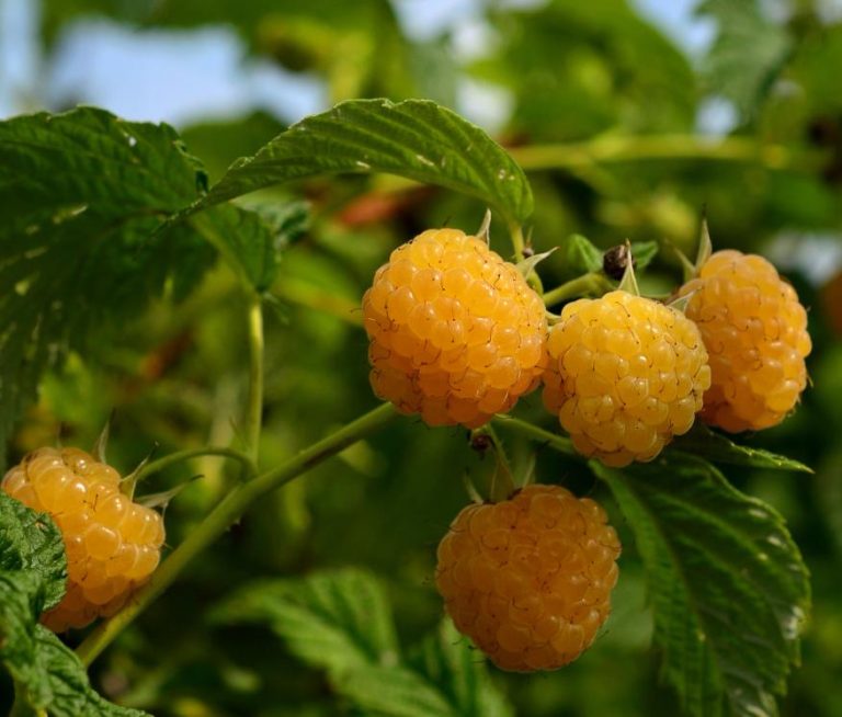 Саженцы малины Абрикосовая порадуют садоводов необычном вкусом и интересной расцветкой ягод. Сорт отличается следующими чертами: