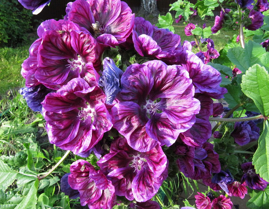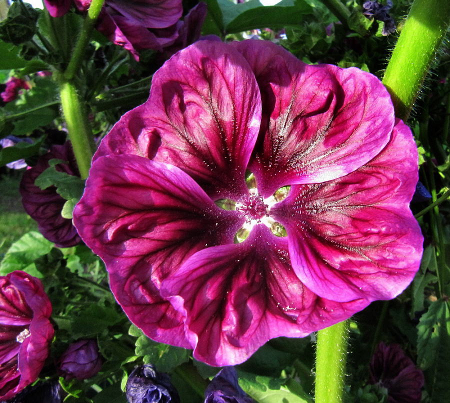 Рассада мальвы мавританской (Malva mauritiana) имеет компактный и аккуратный вид. Вырастает в высоту около 40-50 см. Стебель достаточно прочный, а листики крупные. Цветы имеют интересный окрас, а именно сиреневый с чернильными штрихами. Цветет обильно в августе-сентябре. Достоинства мальвы мавританской: