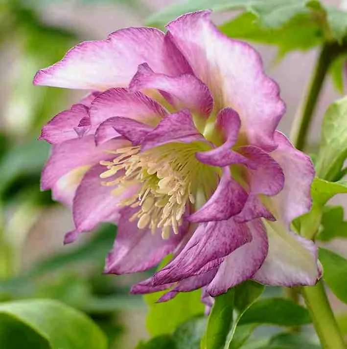 Рассада морозника восточного Pink double отличается засухоустойчивостью, способностью хорошо переносить низкие температуры, неприхотливостью к условиям роста. Высаживать культуру можно как на солнце, так и в тени. Только в первом случае растению необходимо обеспечить регулярный полив. Цветочки нежные, бело-желтого окраса с эффектным темно-фиолетовым кантом и такими же вкраплениями. Цветет многолетник с конца марта. При должном уходе морозник восточный Pink double может порадовать бутонами повторно осенью.
