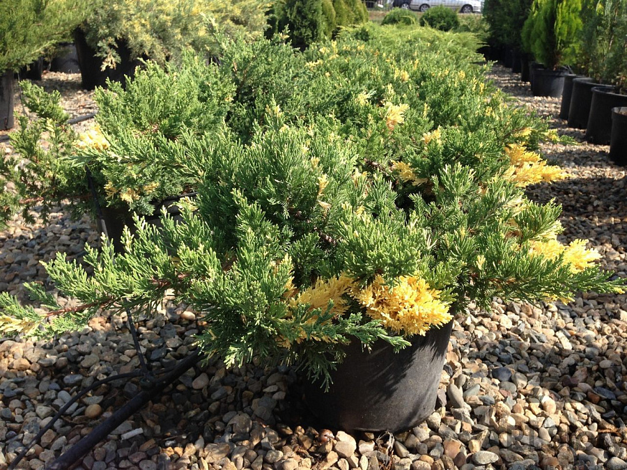 Саженцы можжевельника Вариегата (Variegata) дают яркий декоративный кустарник с белесой хвоей и под цвет нее шишечками размером в сантиметр. Куст станет украшением для многих видов газонов, годится для бордюрных композиций. Для выращивания и ухода немаловажно, что растение неприхотливо к условиям произрастания: Вариегата любит солнечные участки. можжевельники эти совсем нетребовательны к влажности и плодородию почвы, но желательно, чтобы они были умеренно плодородные и легкие, в других случаях необходимо известкование тяжелых почв. Годится крупномер для групповых посадок и в одиночку.