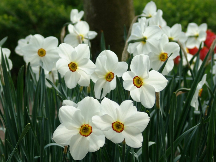Луковицы нарцисса Actaea сажают с середины сентября по октябрь. Подходят не только солнечные открытые места, но и полутень. Выращивать луковицы нарцисса Actae не сложно. Это растения, которые хорошо переносят любое соседство и разную почву. Период цветения приходится на май. Сорт один из самых поздних. Крупные белоснежные лепестки контрастируют с маленькими чашечками, имеющими красивый насыщенный окрас. Цветочки характеризуются ярким ароматом. Высота цветоносов варьируется в среднем от 20 до 30 см. Благодаря скромным размерам они позволяют создать маленькие красочные группы в весеннем саду.