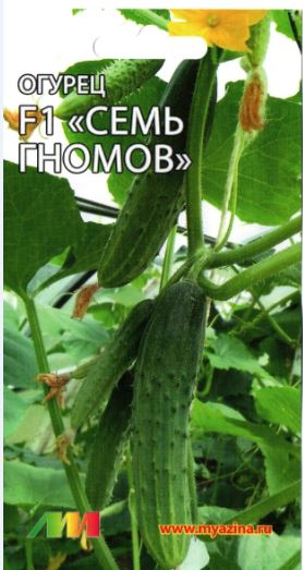 Семена огурца «Семь гномов F1» (Cucumis sativus) дают урожай, который пригоден для употребления в свежем виде и консервации. Сорт подходит для выращивания под пленочными укрытиями и в открытом грунте. Вегетационный период составляет 45-49 дней после всходов. Сорт высокопродуктивный. С 1 кв. м можно собрать до 17-18 кг огурцов. Плоды темно-зеленого окраса, удлиненно-цилиндрические, с бугорчатой поверхностью и редким черным опушением. Их длина - 14-18 см, масса - от 120 до 140 г. Вкус огурцов «Семь гномов F1» приятный, горечи нет.