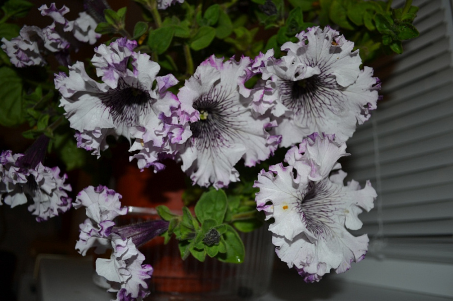 Окраска цветка : Бело-розовая с темно-фиолетовыми жилками