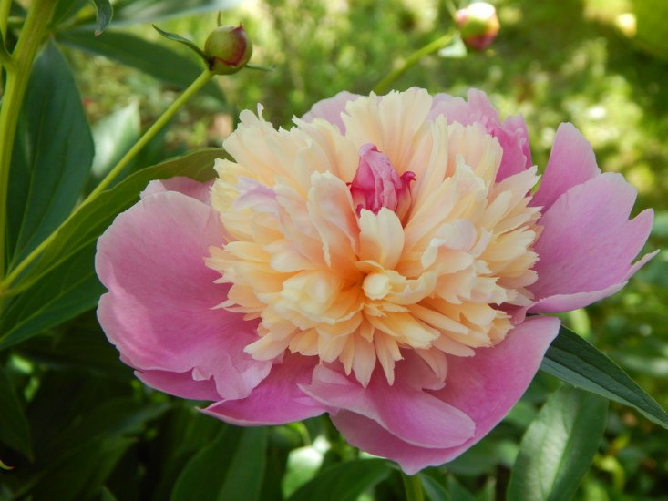 Рассада пиона молочноцветкового Сорбет (Sorbet): быстро приживается и будет долго радовать удивительными трехслойными цветами. Махровые розовые соцветия разделены кремовыми юбками. В центре ярко желтеют пыльники. Насыщенная зеленая листва выгодно оттеняет нежные лепестки. Стебли прямые и крепкие. Цветы долго держатся в срезке. Сорт хорошо размножается делением и черенками. Особенности пиона Сорбет: