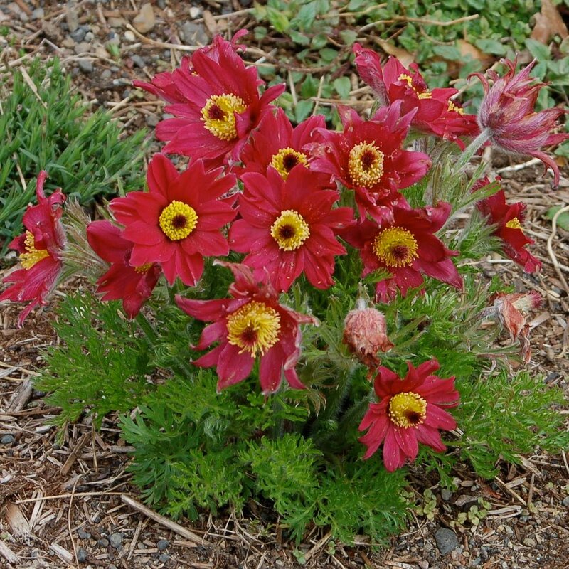 Прострел обыкновенный пинвил дарк ред шейдес - это удивительное растение с красивыми красными цветками, которые будут радовать вас своим блеском и яркостью. Сорт этого растения отличается высотой до 30 см, что делает его идеальным выбором для альпинария. Листья прострела имеют интересную форму и придают растению особый шарм.