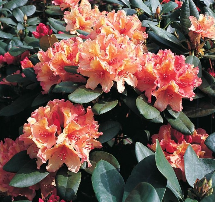 Рододендрон гибридный "Бразилия" - это великолепное растение с оранжево-розовыми цветками, которые расцветают в мае и июне, придавая вашему саду неповторимый вид. Кустарник достигает высоты до 160 см, создавая великолепный зеленый уголок на вашем участке. Листья растения имеют ярко-зеленую окраску и красивую форму, что делает его прекрасным украшением для любого сада.