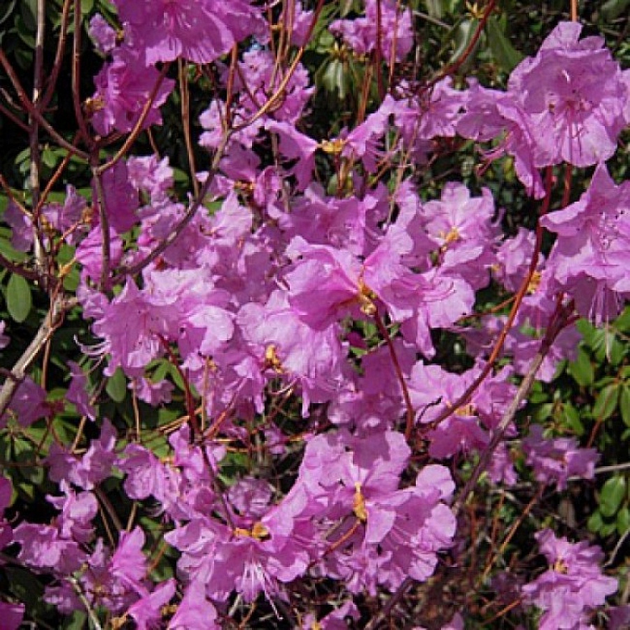 Саженцы рододендрона остроконечного (Rhododendron mucronulatum) относятся к декоративным красивоцветущим многолетникам. Кустарник подходит для озеленения газонов и создания живых изгородей. Гармонично смотрятся в групповых и одиночных посадках. Рододендрон предпочитает расти в полутени. Высота взрослого кустарника около 2,5-3 метров. Ширина кроны около 1,5 метров. Ежегодный прирост составляет 10-15 сантиметров. Период цветения кустарника приходится на апрель-май. Цветки насыщенного сиреневого оттенка. Во время цветение весь куст усыпан соцветиями.