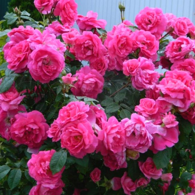 Саженцы розы кустовой Morden Centennial прекрасно смотрятся в маленьких и больших садах. Сорт отличается высокой устойчивостью к болезням и морозам, укрытия на зиму не требует. Разрастается в высоту до 170 см, а в ширину — до 120 см. Цветет с июня до сентября. Бутоны яйцевидные, густо-розовые. Цветочки махровые, состоят из 50 лепестков, широко-чашевидной или почти плоской формы, диаметром до 7-10 см. Окраска бледно-малиновая, но на солнце она выгорает и становится ярко-розовая. Цветы появляются по одному или в кистях до 15 штук. Если соцветия не обрезать, то осенью на их месте появляются красные плоды.