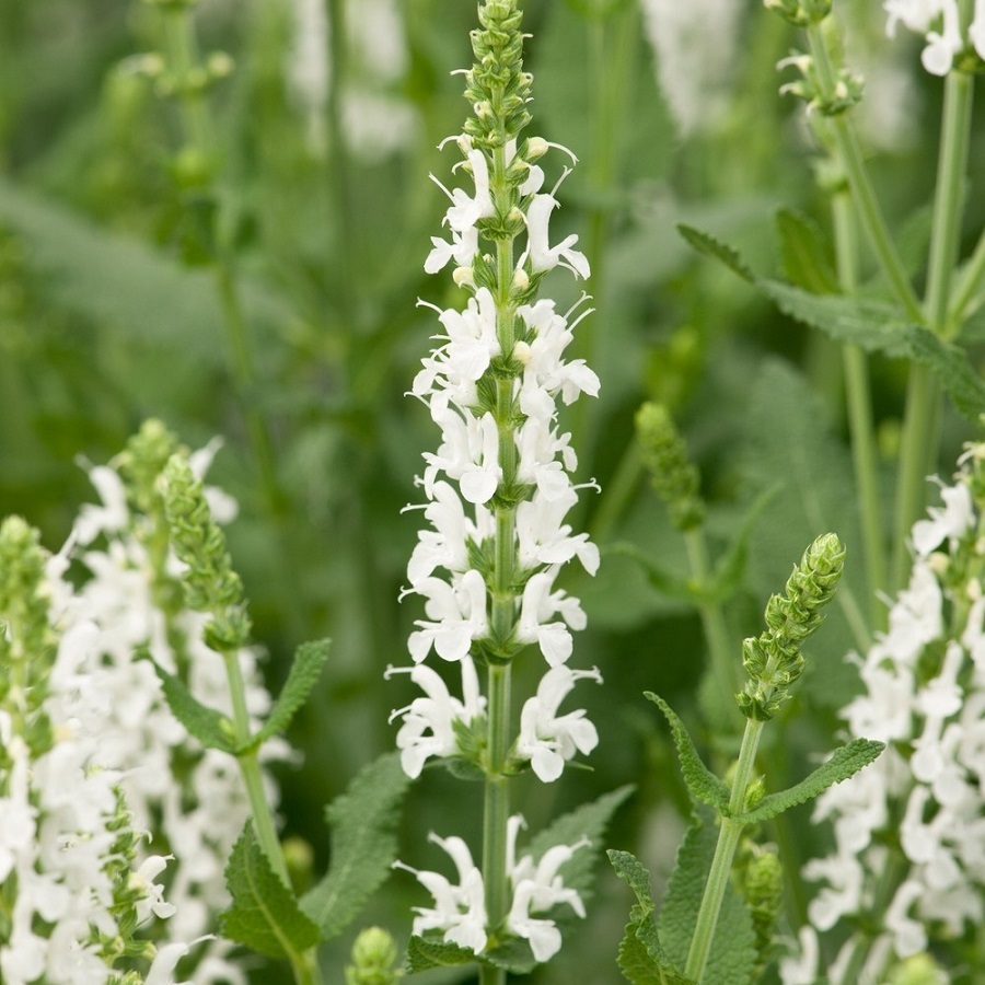 Сальвия дубравная шнеехёгль - это удивительное растение с белыми цветками, которое поразит вас своей изящностью и неповторимым очарованием. Ее стебель прочный и прямой, достигает высоты до 60 см, что делает ее идеальным выбором для альпинариев, газонов, групповых посадок и каменистых горок. Листья сальвии дубравной имеют зеленую окраску и создают красивый фон для ярких белых цветков.