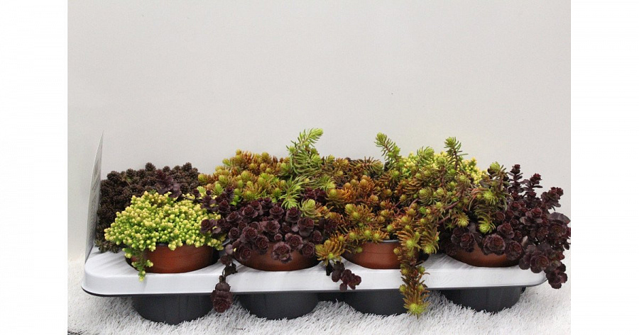 Седум смесь видов - это настоящий калейдоскоп красок и форм в вашем саду! Это растение поразит вас своими жёлтыми, розово-пурпурными и белыми цветками, создавая неповторимую атмосферу радости и уюта. Высота этого растения может достигать от 10 до 25 сантиметров, что делает его идеальным для миксбордеров и рокариев. Листья седума имеют разнообразные формы и оттенки, придавая растению особый шарм и изысканность.