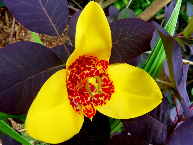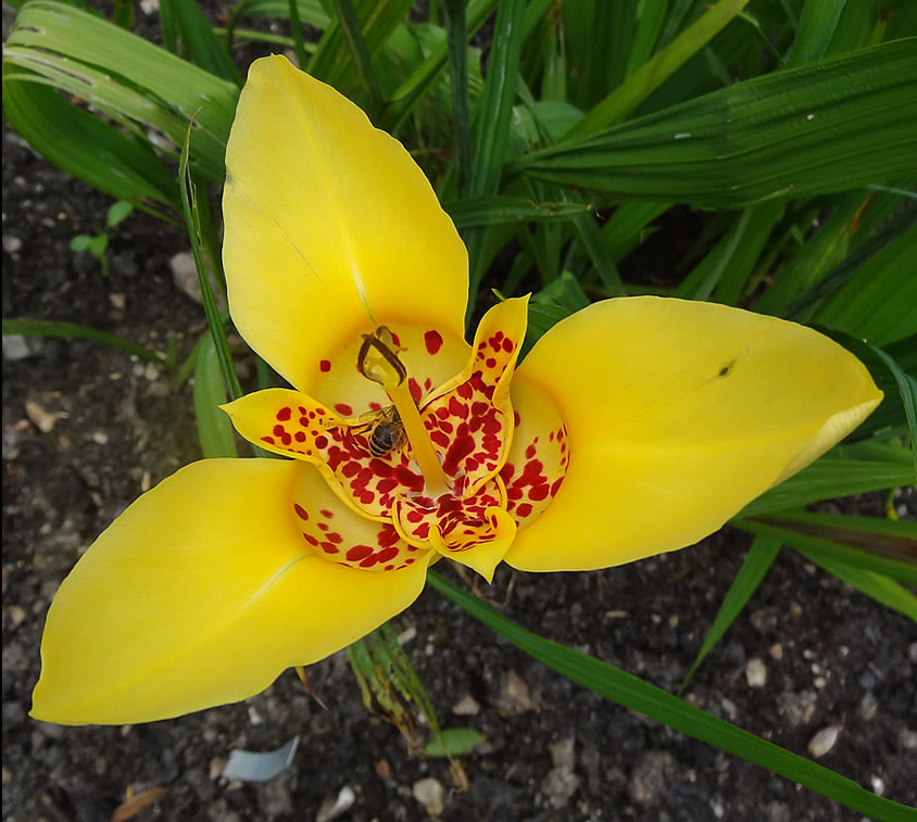 Луковицы Тигридии павлинии Еллоу (Yellow, Tigridia pavonia) отлично прорастут и подарят прекрасное экзотическое растение, которое будет украшением сада, террасы на длительный период лета и осени с июля по ноябрь. Тигридия великолепна, она вырастает до 50-60 сантиметров в высоту, имеет ланцетовидные листья, крепкие цветоносы, на которых формируются от одного до трех крупных цветков. Форма и большие размеры цветов восхищают. Диаметр их составляет 10-15 сантиметров, лепестки большие ярко – желтые с тигровой окраской середины в виде красного крапа. Во время обильного цветения этого растения сад будет лучшим местом препровождения. Многолетник любит солнце и не переносит ветра и похолодания.